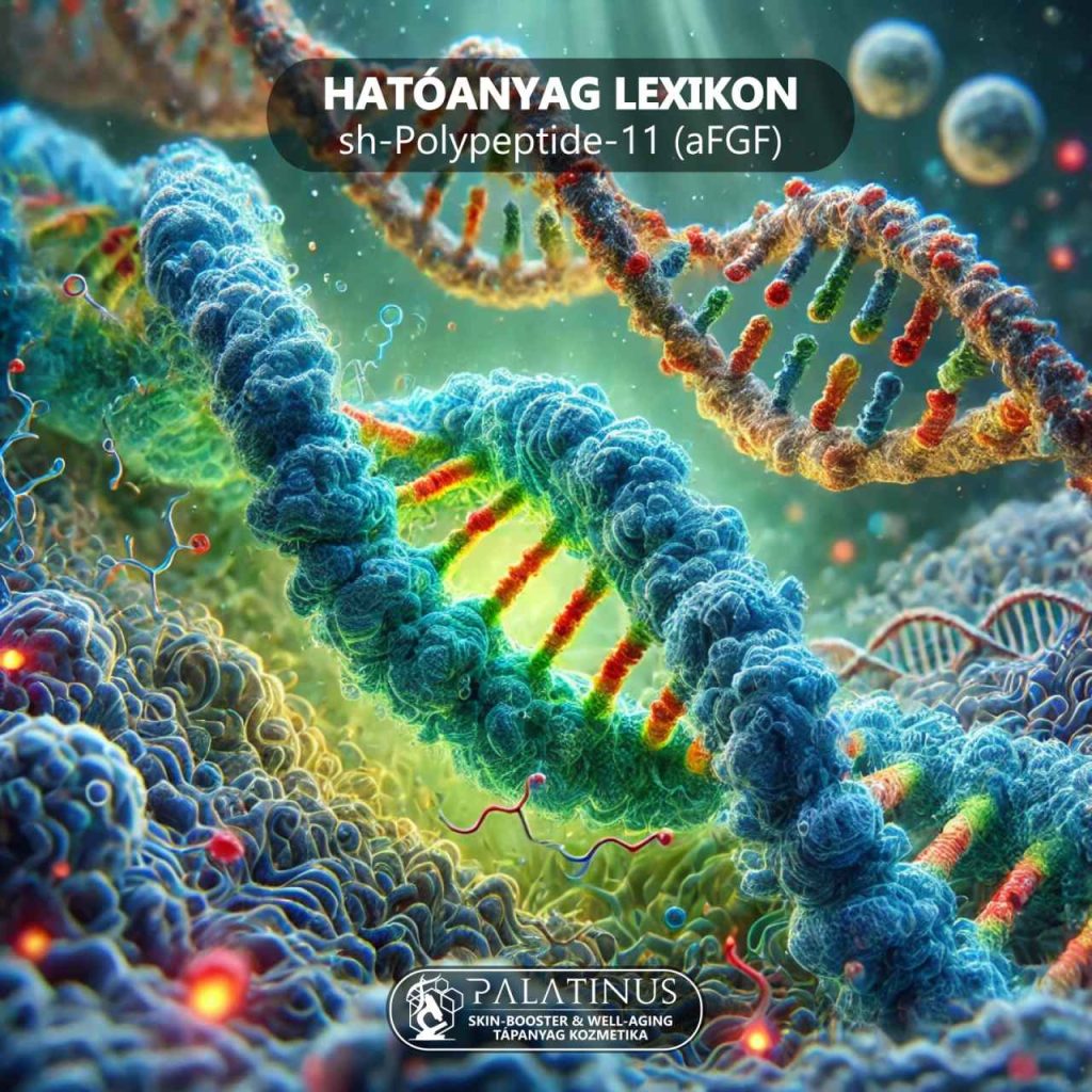 Az sh-Polypeptide-11, más néven savas fibroblaszt növekedési faktor (aFGF), egy közepes méretű sejtjelátviteli molekula, amely a fibroblaszt növekedési faktorok családjába tartozik. Az sh-Polypeptide-11 egy rekombináns humán peptid, amelyet Escherichia coli baktériumok fermentációjával állítanak elő. A kiindulási gén az emberi aFGF-et kódoló gén szintetikus másolata, amelyet a termelési rendszerhez adaptálnak. Az sh-Polypeptide-11 modern biotechnológiai fejlesztés, amely hatékonyan stimulálja a bőrben zajló regenerációs és szerkezeti folyamatokat. A rekombináns technológiának köszönhetően etikus és fenntartható módon állítható elő, miközben széles körben alkalmazható öregedésgátló és bőrmegújító készítményekben.