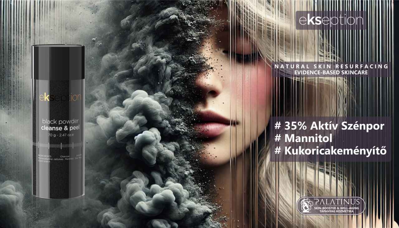 BLACK POWDER CLEANSE & PEEL 35% Aktív Szénpor detox arctisztító mechanikai hámlasztópor (EKSEPTION)