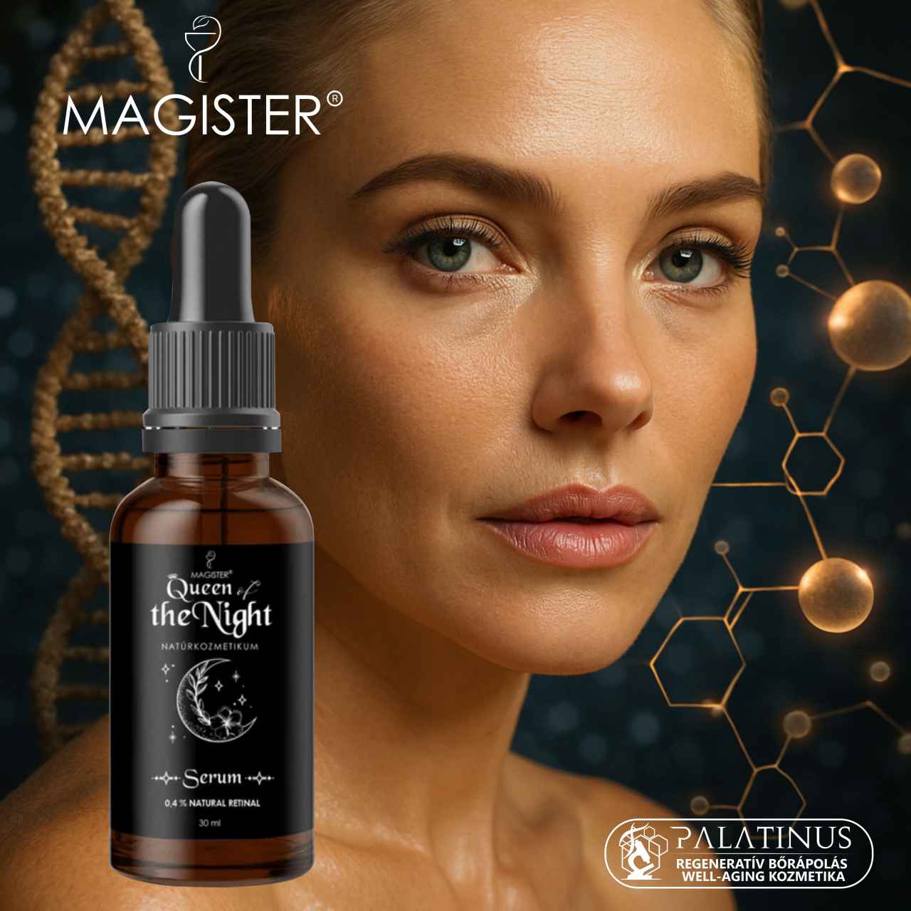 - Ha nem tapasztalsz kellemetlen tüneteket, néhány hét elteltével erősítheted a rutinodat a Queen of the Night Serum használatával, mely először bármely más Magister hidratáló alá, később pedig akár a másik két testvére alá rétegezhető az esti órákban.